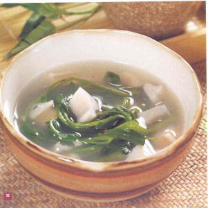 2. 空心菜和藕人锅加水煮30分钟后用淀粉勾芡即可食用。