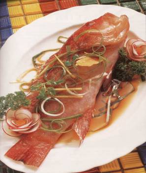 游水石斑鱼1条,姜3片,葱段2条,芫荽1株,胡椒粉少许,生油少许。休 闲居 编 辑