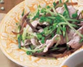 ③将黄瓜片、木耳放在里脊片上,加盐3克、味精、醋、蒜末、姜末、香油,搅拌均匀即可。
