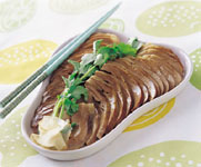 2. 连同汤汁放冷后取出猪心,切成薄片,再将炖煮过的药汁及香油淋上即可,食用时可搭配香菜。