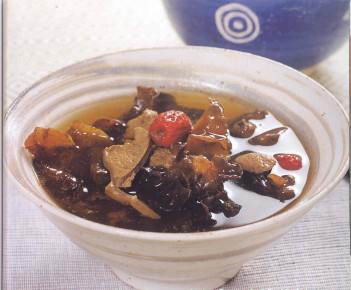汤内含极丰富的铁质和维他命C、钙和磷等矿物质,猪肝中的铁十分容易被人体吸收,跟木耳搭配为晨佳补血食疗品,尤其适合女性月经不调、经期腹痛等症状。