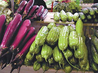 原料:茄子2条,莲藕50克,日本小黄瓜50克,胡萝卜1根。