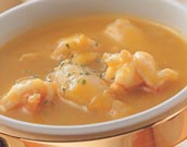 3.将南瓜泥倒入煮锅内,再加3碗水以中火煮沸,加入虾子、蟹足肉,再煮沸一二成,加盐调味。