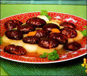 5、下油一汤匙,煮滚献,试味,淡可加许盐,淋在冬瓜上,冬菇上。