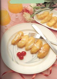 做 法: 1、将清水注入砂糖里调成稀糖水。 2、苹果去皮去瓤,每个切开成8份放入稀糖水浸泡。 3、用清水将自发粉调成粉糊。 4、将苹果抹干水分,放入(3)中粘匀粉糊。 5、用镬烧热三杯油,放下苹果炸至微黄色捞起沥干油分,洒上砂糖便成。