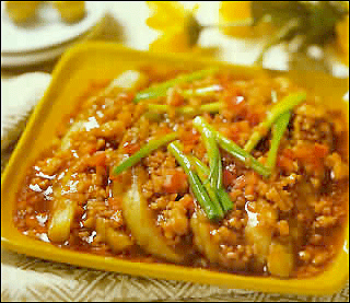 肉泥20克,茄子200克,香葱10克,生姜10克休 闲 居 编 辑