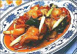 特点:用猪腿肉,经先煮后炒,或先蒸后炒而成。成菜色泽红绿相衬,肉片厚薄均匀,软硬适度,味浓鲜香,微辣带甜。