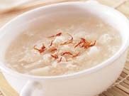 3. 锅内倒入高汤、白芷煮熟,续加银耳、山药,煮约5分钟后加盐调味,再倒入淀粉1大匙勾芡,改小火,起锅前把鸡蓉慢慢加入搅匀后熄火,倒入深盘内,撒上藏红花即可。