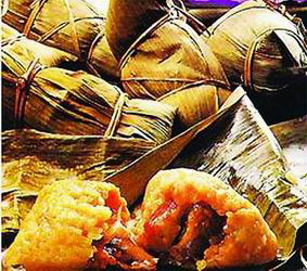 我们家关于粽子的吃法与平常人家不一样,这里介绍给大家。先将糯米和粽箬洗净后,按照传统的方法包成赤豆粽或白米粽,用高压锅将粽子煮3至4个小时。待粽子冷却后,将粽叶剥去。此时,在平底锅里放入少量的油,把已剥去粽叶的粽子轻轻放进锅内,直到将粽子表面煎至略微发黄。另外,将炒熟的黄豆、芝麻分别研磨成粉状,加一些白糖,混合拌匀。这样,既可以把刚刚煎好的粽子蘸着拌匀的芝麻、黄豆粉吃,也可以在粽子中裹入芝麻、黄豆粉,随便怎么吃都比用传统煮熟的方法做出的粽子更好吃、更有风味、更香!(潘倩)