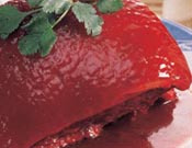 3. 待肉块酥软时,拣除红米袋,并捞净汤汁中的杂质,然后将肉盛出,淋上黏稠的汤汁,并缀以香菜,食用时用小刀将肉划开即可。