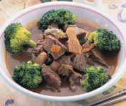 3、锅中倒入B料,加入牛肉、葱、姜煮开,转小火续煮30分钟,加入青菜花煮熟,再加C料调味即可。