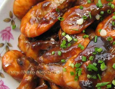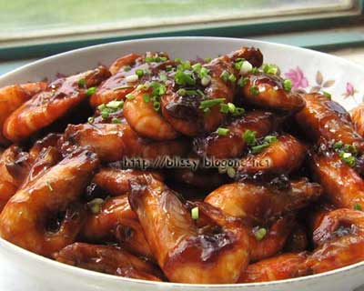锅下油,加葱姜,煸香后倒入虾,翻炒,下老抽, 生抽,盐,糖,翻炒,加水少许,焖一下, 勾芡就出锅了。