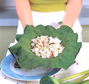 叫花鸡、东坡肉给我们的启发,似乎荷叶更适合给荤肉去腻。其实,荷叶一样适宜清淡做法,比如荷叶饭。荷叶的清香能让本身就有稻谷清香的米香上加香,实在是味觉上的清纯体验。休 闲居 编 辑