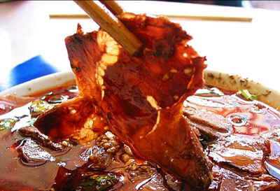 如果油温不够,再用微火加热,其间,要用铲子不停地搅动,让温油慢慢浸烫出辣椒和香料的味与色来,待到色泽红透、椒香扑鼻之时,将炼制红油的锅移至一旁,让其慢慢冷却。如嫌这样炼出的红油,香味还不够浓烈,也可根据需要,在炼制过程中,加入八角、豆蔻之类。如何取舍,要看炼制的红油作何所用,如是做凉菜的佐料,太重的香料气息,反而会掩去菜肴的本味。