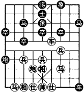 如(图)是1994年全国团体赛林宏敏对尚威弈完17回合时的形势。虽然双方子力大体相等,但黑车位欠佳,缺士防弱。红设法调车至左翼,集中优势子力,攻击黑空虚之右翼,从而扩大先手。着法如下:
