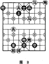 红方双马飞驰,或进或退,令人眼花锻乱,现退马“马后炮”,黑必支士,则马四进二“双将”杀。红胜。