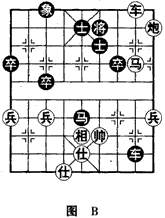 如(图B),红再次平车二路,则黑无法解决红马二进三马后炮的杀势,红胜。