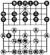 如图形势,红挺三兵制马,形成了“两头蛇”阵式,但不如改走车九进二含蓄。