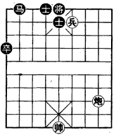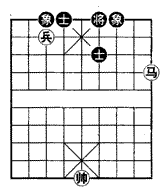 如(图),红马低兵难胜士象全,不料红兵吃象成为老兵反而可胜,着法红先: