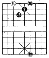 如(图),红车底兵对单车,通常是和棋,但由于黑将位置欠佳,红只要实现车占中红即可取胜。着法红先: