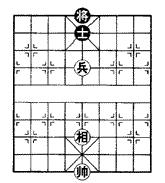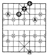 兵卒是最弱的进攻性子力,在残局低兵只能胜孤将,单兵对单士则一般是和局,但也存在着巧胜机会。例如图,红先则巧胜,而黑先则和。