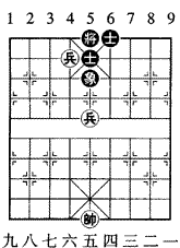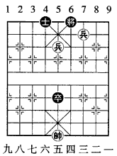 6、帅五平六卒5平4 7、帅六进一!将4平5 8、兵六进一(红胜) 着法二(黑先)