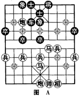 1985年全国象棋个人赛,广东黄子君对上海单霞丽。双方以五六炮对反宫马布局,演变到21回合形势如(图A)。红方双炮双马无仕残相,黑方也只有单车。到底是红方四将擒王呢,还是黑方大车称雄,双方展开激烈厮杀。红棋借先行之机弃炮打象,继而又弃兵跃马,借帅力卧槽绝