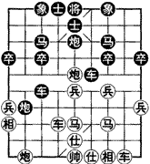 的问题是黑车正捉着红中兵,针对黑方的威胁,红方妙手上马拦击,使黑方反受牵制,红方由此 扩大了先手。红方先行: