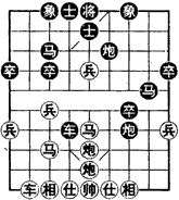 如图形势,红方胡荣华双炮架在中路,中兵已杀入前线,攻势很强大,如何扩大攻击力量, 是红方当前的重要任务。红方巧妙地走了平车兵捉炮的妙着,达到了取势的目的。红方先行: