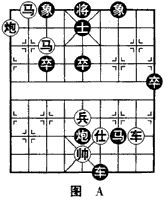 如图B,红如帅五进一,则马5进3“马后炮”杀;如帅五平四,车5进2,帅四进一,车5平6,帅四平五,马5进3亦“马后炮”杀,黑胜。