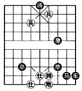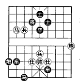 [学习要点提示] 红先弃兵引将定位,再借“将军”之机调士,最后以兵吃象,一鼓作气杀王致胜。此局接近于实战残局,颇有借鉴价值。