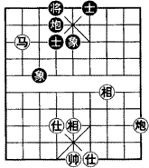 此局系一次全国赛弈成的残局经略加修改而成,如(图 )形势,轮红走。一般情况下,炮士象全可守和马炮有士相,但此局黑方士象位置欠佳,红将有机可乘,介绍如下: