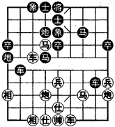 如图形势,是1993年北方大师精英赛辽宁尚威执红对北京大师的实战中局。从局势来看黑方多卒且双车占据攻击位置,红方处于劣势,但红方为扭转劣势实施了胜负手,走:
