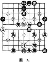 (图A)是1982年“北方杯”象棋邀请赛中上海胡荣华对黑龙江赵国荣弈至第26回合形势,系由五七炮对屏风马演变而成。双方大子相等,红方多兵。红过思考,红方决定再换一车,随即以无车战有车,抢先夺得主动,马入卧槽,封锁黑炮,使黑孤车无援,被动挨打,终以渡兵过河取得胜利。