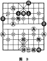 如(图B),红兵过河,如虎添翼,黑再难抵挡,结果红胜。