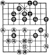 如图形势,红方杨官?U一 炮沉底线,已经取得了一定的攻势,但红方阵地中的子力还不能及时追杀,何况黑将即将平中避险,红方的攻击目标一旦转移,攻击更加受阻,在此时刻,红方平中车控制了局势,终于取得了胜势,红方先行: