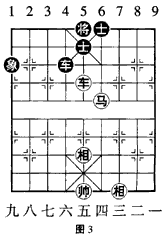 从这盘和棋里不难看到,红方车马之所以不能像前局 (图1)那样造成致命的攻击,是因为黑方有1路象守住3路底线,红方借帅力亦无法得手,所以终于成和。