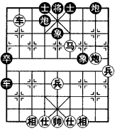如图B,黑退车捉炮,黑炮必死,因黑如车1平4得炮,红马四进三,将5进1,炮二进三马后炮杀,黑无解。失子后,黑又坚持六个回合,记录于下: