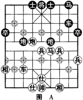 如图A是广东许银川对北京张强在全国赛中激战26回合所形成。观图可知,黑方多一子但少兵缺双象,子力位置也不好,处于劣势,红方车马炮占位好,又有两路雄兵开路,虽少一子仍占优势。实战中红方退炮过兵,绵里藏针,紧握先手,终于运马入槽,立炮成杀。请看实战着法: