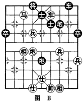 如图B,红平炮绝杀。纵观全局,红方冲兵架炮一气呵成胜局,让人叹为观止。