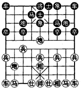 1.兵七进一炮2平3 2.炮二平五象3进5 3.炮五进四士4进5 4.相七进五马2进4