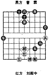 如图形势,是1975年第三届全运会决赛阶段,河北刘殿中与吉林曹霖弈成的残局,轮红走。此时黑车正捉住红兵,双方围绕这一对头兵卒展开了一场智斗。