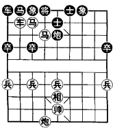 这几个回合,红方一打一闲,走得有声有色。黑方招架无力,疲于奔命,最后败亡于马后炮杀势。