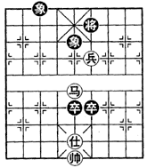 本局红方需用肋道卧槽马支援红兵从士角直逼黑将,以兵定宫心锁将,运马攻之即可取胜。