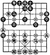 如图,是名手实战弈成的形势。由五七炮对屏风马进7卒布局演变而成。现在轮红方走子,针对黑方窝心马,连续冲中兵入杀,着法干净利索。
