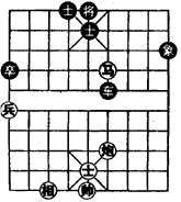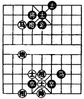 ②如改走士5进4,马七进八(这里必须先动马后动炮,如果先走炮二进六,则士6进5,马七进八,将4平5,红不成杀),将4进1,炮二进六,士4退5,马八退七,将4进1,炮二退一,士5进6,炮二平九,炮8退7,马七进八,炮8平3,炮九平七得子,红方胜定。