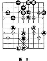 如图B,红棋马后炮胜。