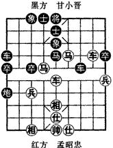 如图所示,红方车马占位相当有利,随时可以乘机发动攻击,争取优势局面。此时红方经过再三的推敲,计算出了弃马的凶悍杀着,迫使黑方不敢吃马,由此得子而成胜势。