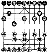 [注] ①红方跳边马先活通左翼,正着。如改走兵九进一,则卒1进1,车九进五,炮5进4,仕四进五,象7进5,马二进三,炮5退2,车九退一,马8进7,红无便宜。