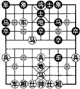 如图,是1996年全国团体赛河北刘殿中对黑龙江赵国荣弈至第13回合时的形势。由仙人指路对卒底炮转列炮布局演变而成。现在该黑方走子: